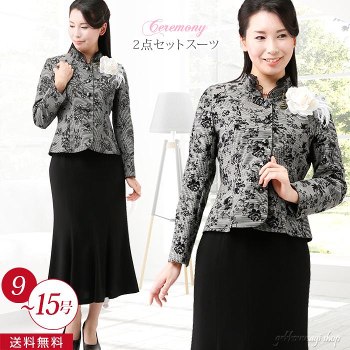 レディーススーツ 花柄フロッキー2点スーツ ミセス 母親 祖母 ロングスカート 結婚式 お宮参り 服装 80代 70代 60代 50代 40代 5950 月光ウサギショップ 通販 Yahoo ショッピング
